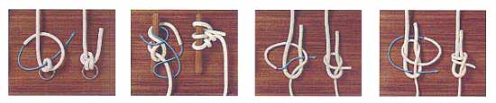 The reef, or square knot is a classic, used by sailors to bunch up sails, also for tying up your karate belt. It is used for tying two lines to bind things together. It is easy to tie, untie and adjust.